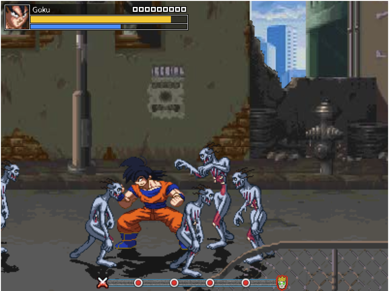 In "Crazy Zombie 4.0: Eschatology Hero 2," a variety of heroes from different universes join forces to battle against ruthless zombies. This fourth version of the popular crossover fighting game introduces several new features, such as a Super Saiyan mode that lets Goku temporarily boost his power to wipe out the undead more efficiently. A new playable character, the Fighting Chicken from Family Guy, is also included. The game is easy to pick up, even for new players. The game's main goal is to survive by defeating all the enemies on each screen. You start with Eschatology and Challenge Modes, and beating them unlocks the even more intense Survival Mode and Eschatology Mode 2. You can also play cooperatively with a friend on a single keyboard. By fighting enemies and smashing objects in the environment, you collect money and items. This money is used for crucial character upgrades like health, attack, defense, and regeneration. These improvements are necessary to overcome the tough story mode, and you'll need to earn a lot of cash to fully max out a character's abilities. Player 1: Move: W,A,S,D Attack: U,I,J,K,L Player 2: Move: Arrow Keys Attack: 1,2,3,4,5
